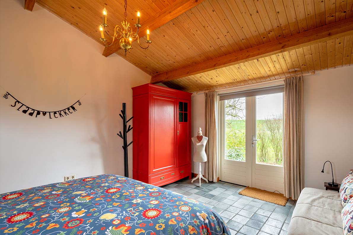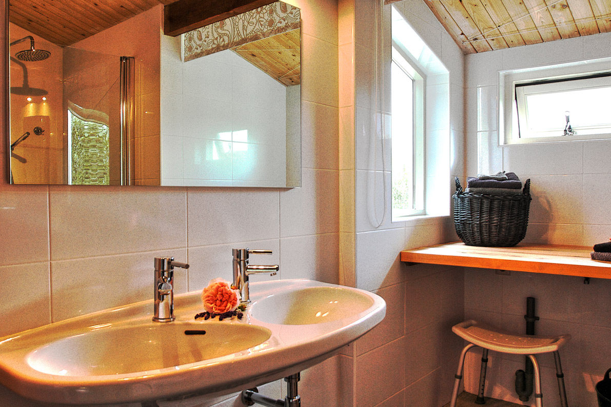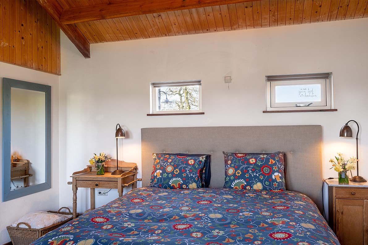 De keuken is van modern comfort voorzien: ruime koelkast met vriezer, combimagnetron, vaatwasser, vierpits gasfornuis en Nespresso-apparaat. In het verlengde van de keuken met gezellige ronde eettafel vindt u de ruime, sfeervolle woonkamer met comfortabele zithoek en televisie. Op frisse dagen kunt u zich warmen bij de houtkachel. Het hele huisje is voorzien van vloerverwarming. Dat geldt ook voor de met riviersteentjes betegelde ruime badkamer met stortdouche, (invalide-)toilet en twee wastafels. In de grote, stijlvolle slaapkamer (ook met prachtig uitzicht) vindt u alle ruimte om uw garderobe op te bergen. De woning is geschikt voor maximaal vier personen en heeft alles in zich om het ware thuisgevoel te geven.